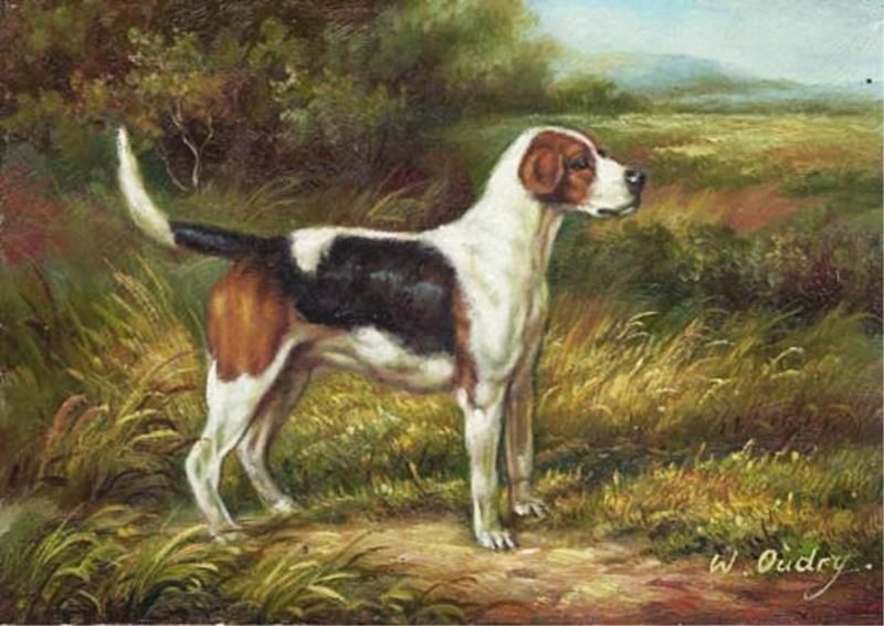 5 x 7 Oil on Board ~Hunting Dog in Field~ Signed W. Oudry