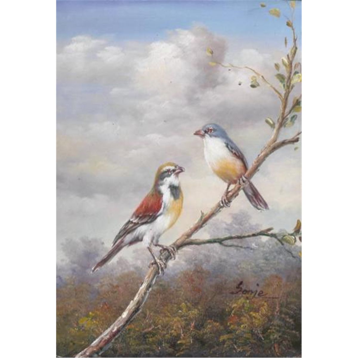 5 x 7 Oil on Board ~Perching Birds~ Signed Sonje