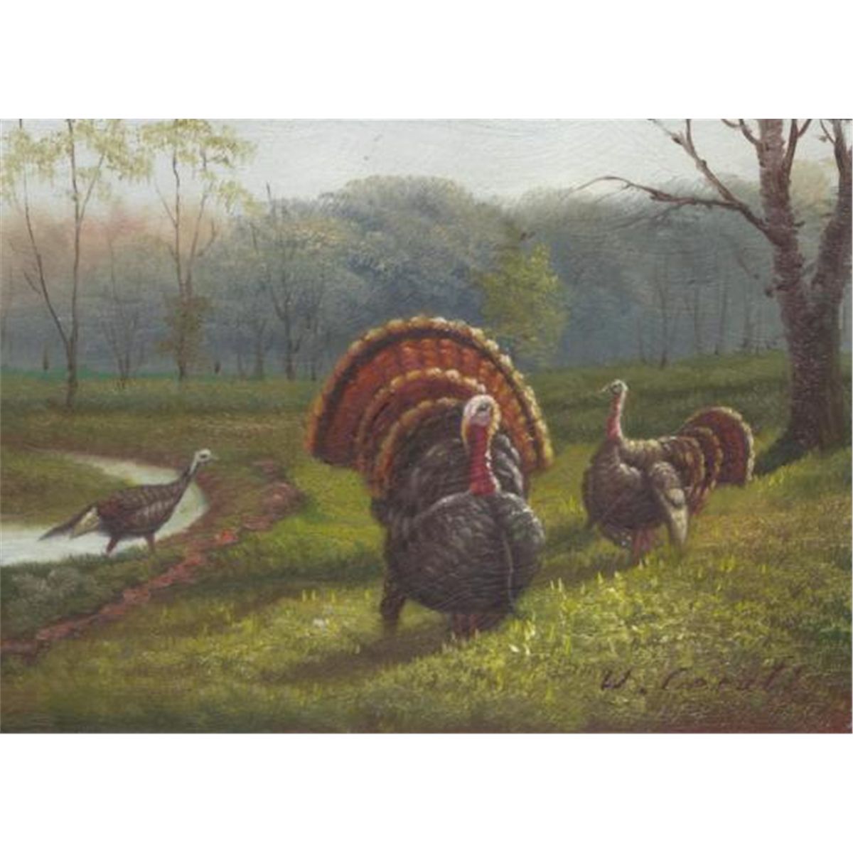 5 x 7 Oil on Board ~Turkeys in Forest~ Signed W.Ceruti