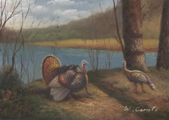 5 x 7 Oil on Board ~Turkeys in Forest~ Signed W.Ceruti