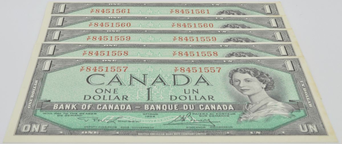 5 x 1954 $1 Consecutive