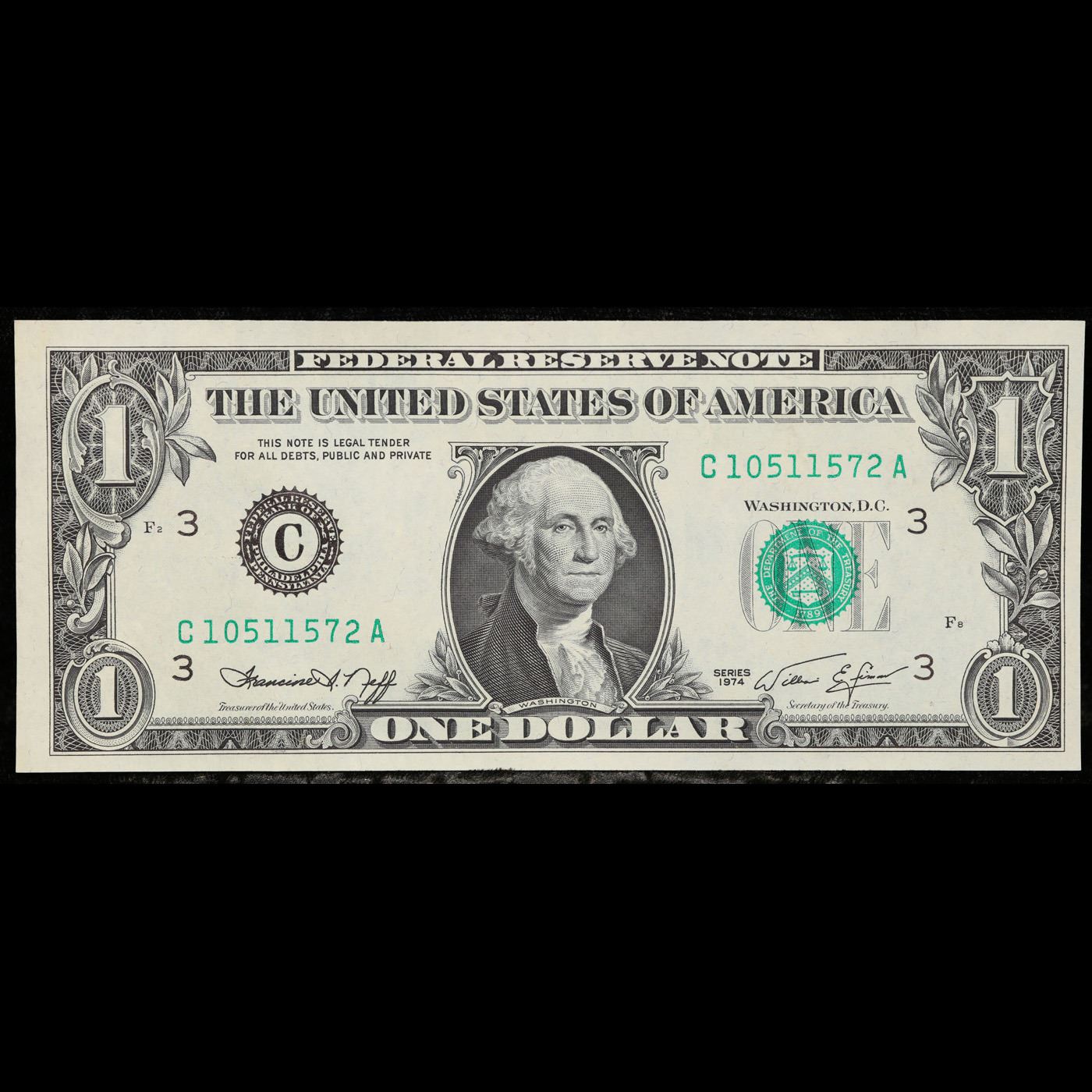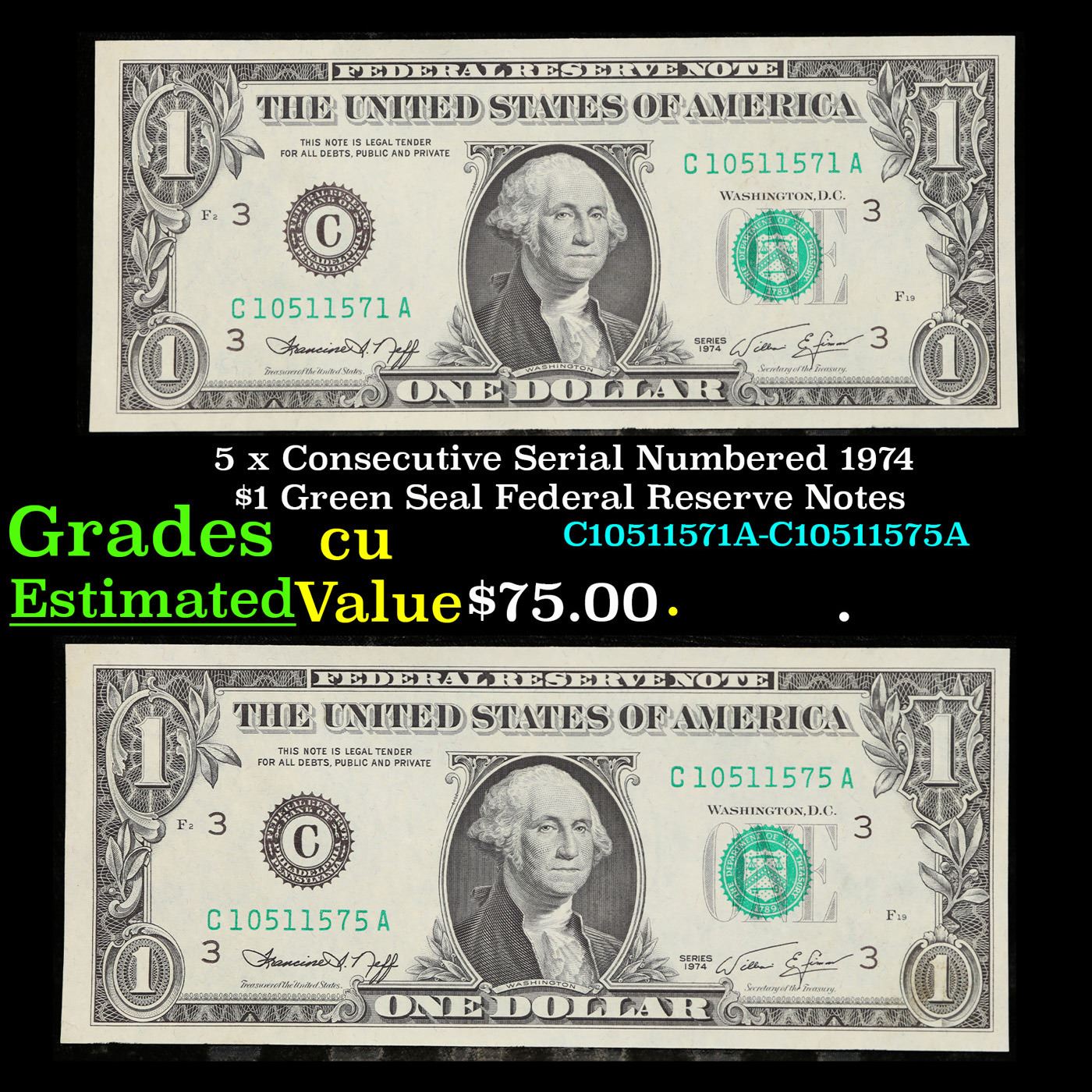 5 x Consecutive Serial Numbered 1974 $1 Green Seal Federal Reserve Notes Grades CU.
