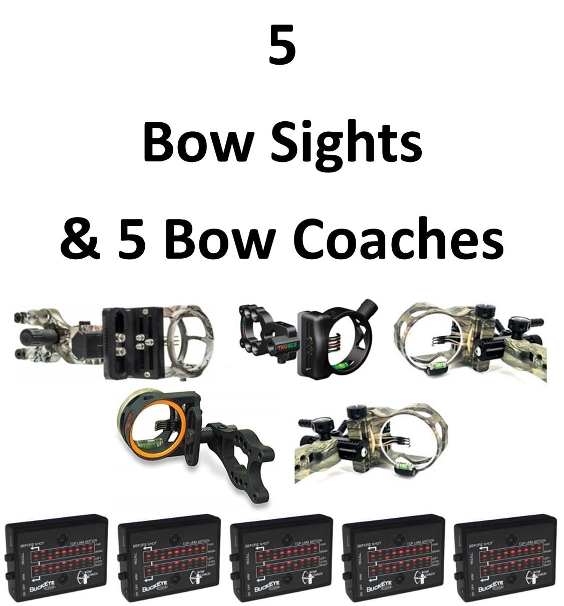 5 x Sights & 5 x Bow Coachs, Axion Soul Hunter 3 Pin Lost Camo AT, Rite-Site XS 5 Light 19 Black, Grave Dancer 3 pin .019, Optix SE .029 LH, Optix SE .019 RH
