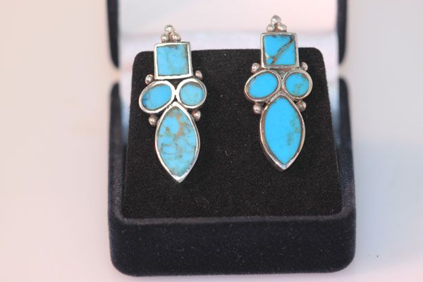 50.00 CTW ANTIQUE LOOKING TURQOUISE DANGLING EARRINGS . **|**|** 50.00 CTW ANTIQUE LOOKING TURQOUISE DANGLING EARRINGS .925 STERLING SILVER ; MSRP: $250