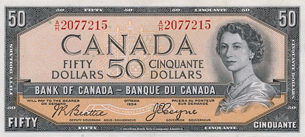 1954 Issue. BC-34b. Beattie-Coyne. ‘Devil’s Face’. No. A/H2077215. PCGS graded Extra Fine-40.