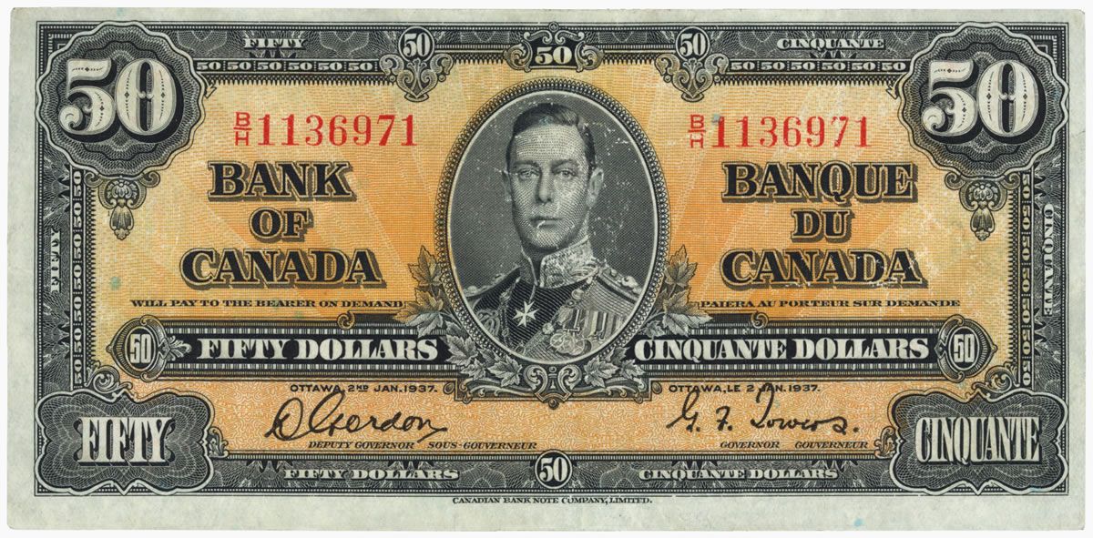 BC-26b. Gordon-Towers. No. B/H1136971. PMG graded About Unc-53. small tear.