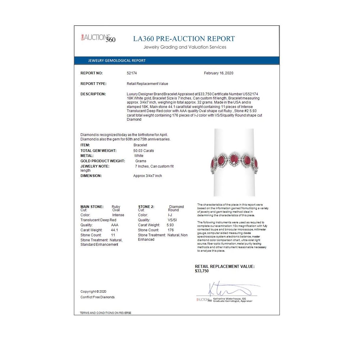 REF-807Y6X - SKU: 52174 ---- 50.03 ctw Ruby & Diamond Bracelet 18K White Gold