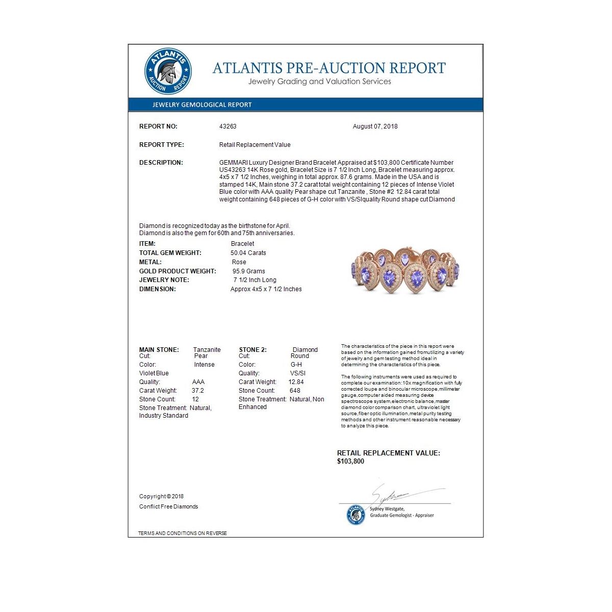 50.04 ctw Tanzanite & Diamond Bracelet 14K Rose Gold