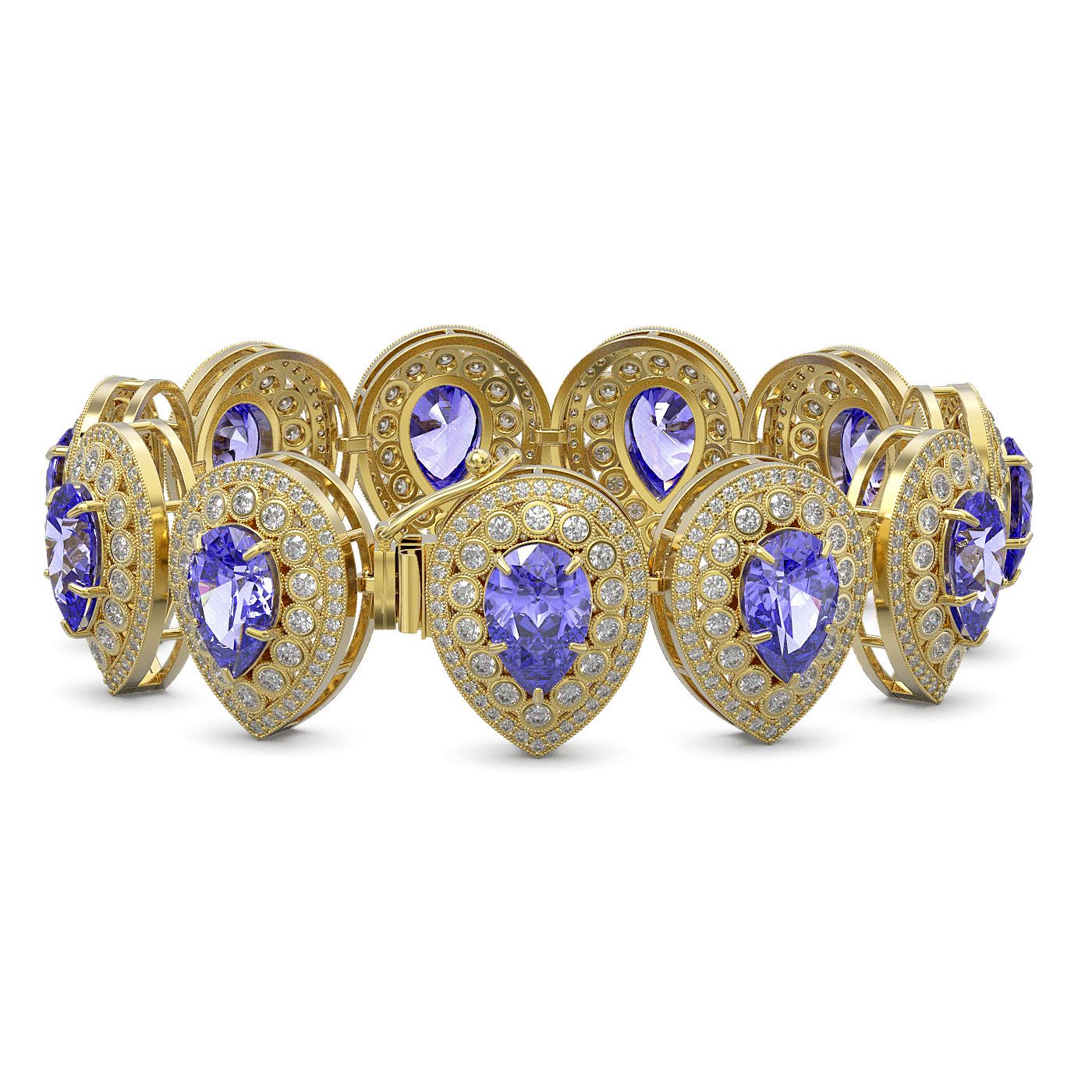 REF-2636A4N - SKU: 43264 ---- 50.04 ctw Tanzanite & Diamond Victorian Bracelet 14K Yellow Gold