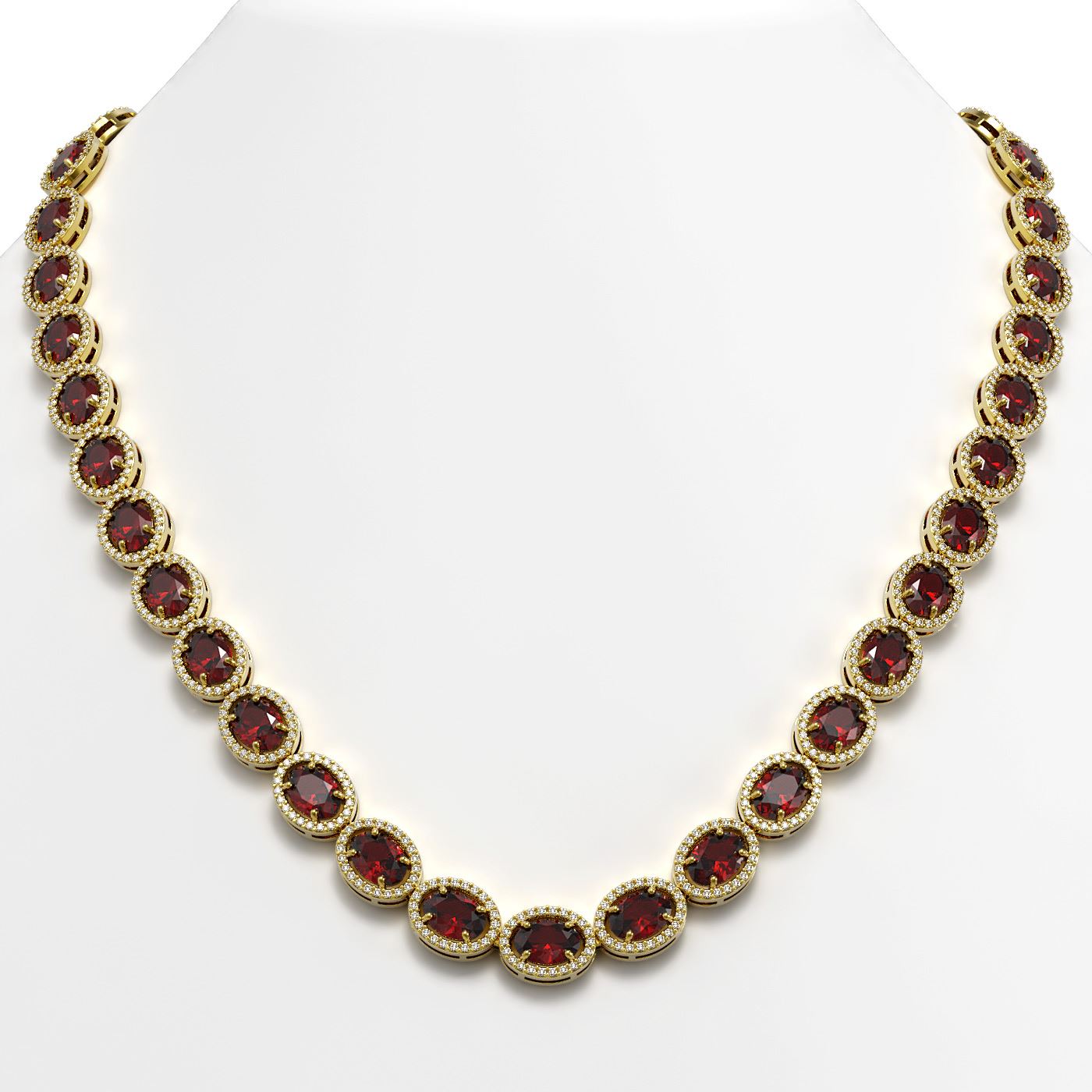 SKU: 40600 ---- 50.08 ctw Garnet & Diamond Micro Pave Halo Necklace 10k Yellow Gold