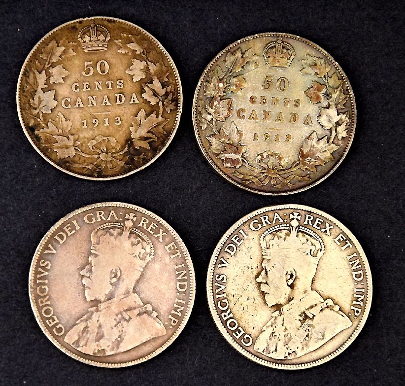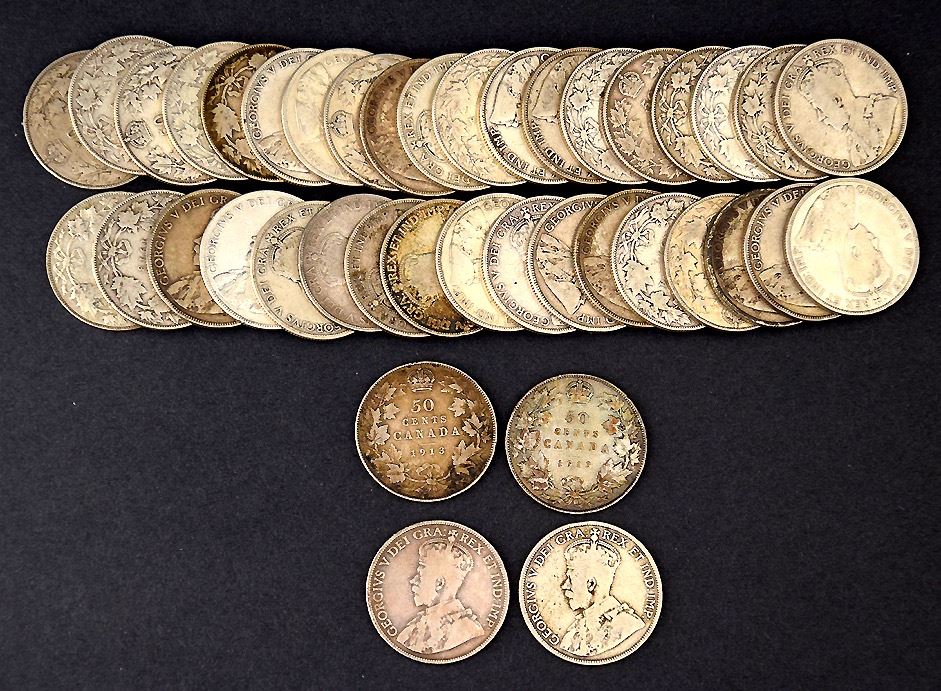 Canada 50¢, 1913, 40 circulated coins, average VG condition, no damaged pieces.
