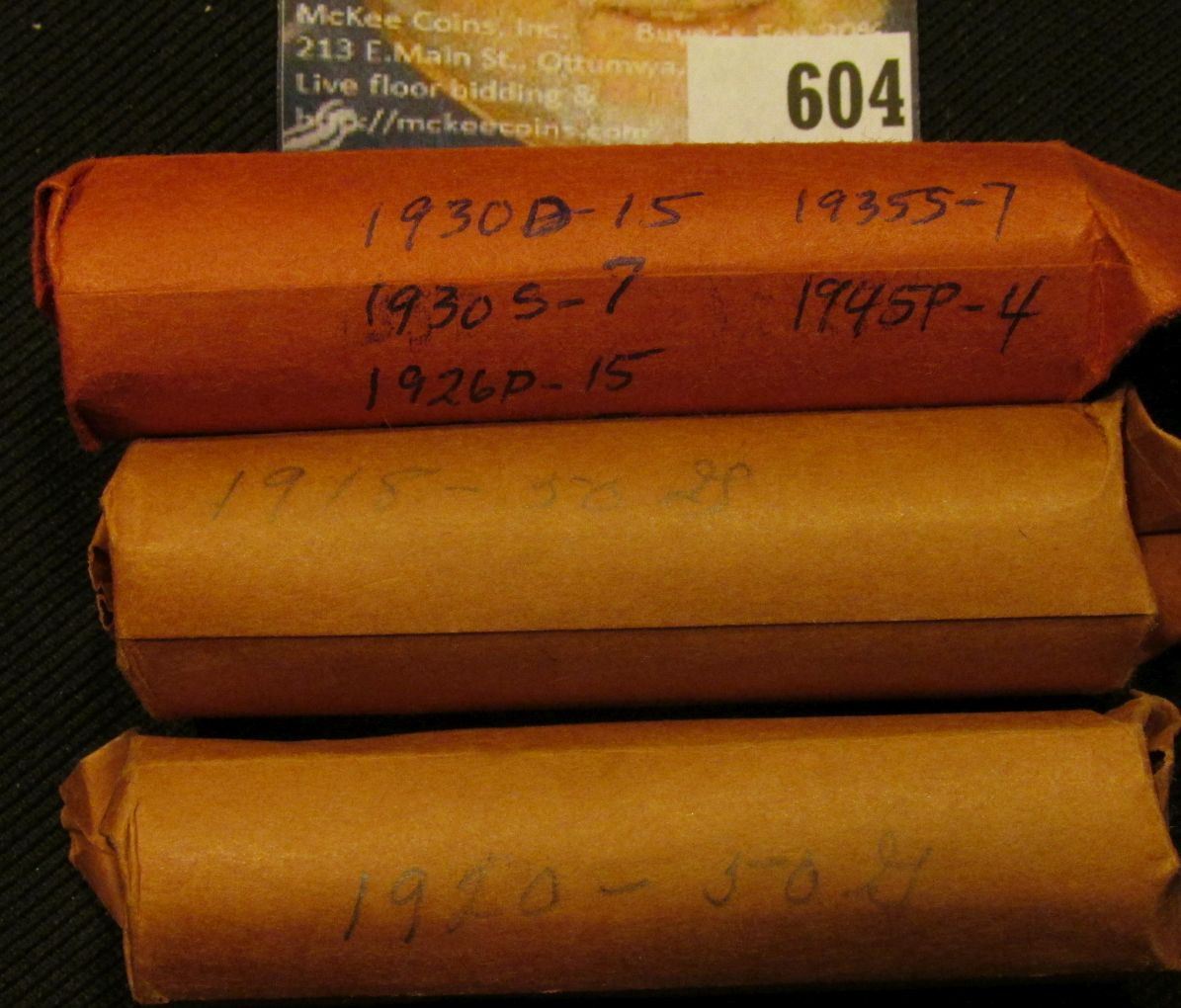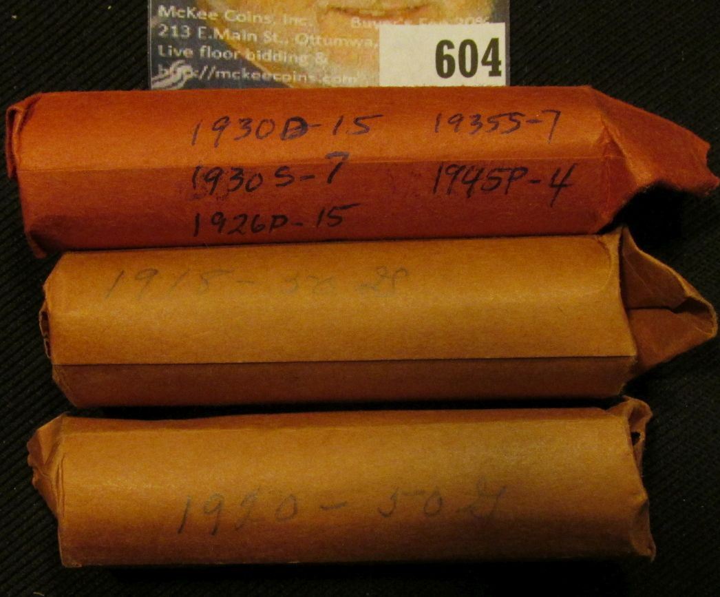 (50) 1915 P, (50) 1920P, (15) 26P, (15) 30D, (7) 30S, (2) 35D, (7) 35S, & (4) 45P Lincoln Cents in paper wrappers.