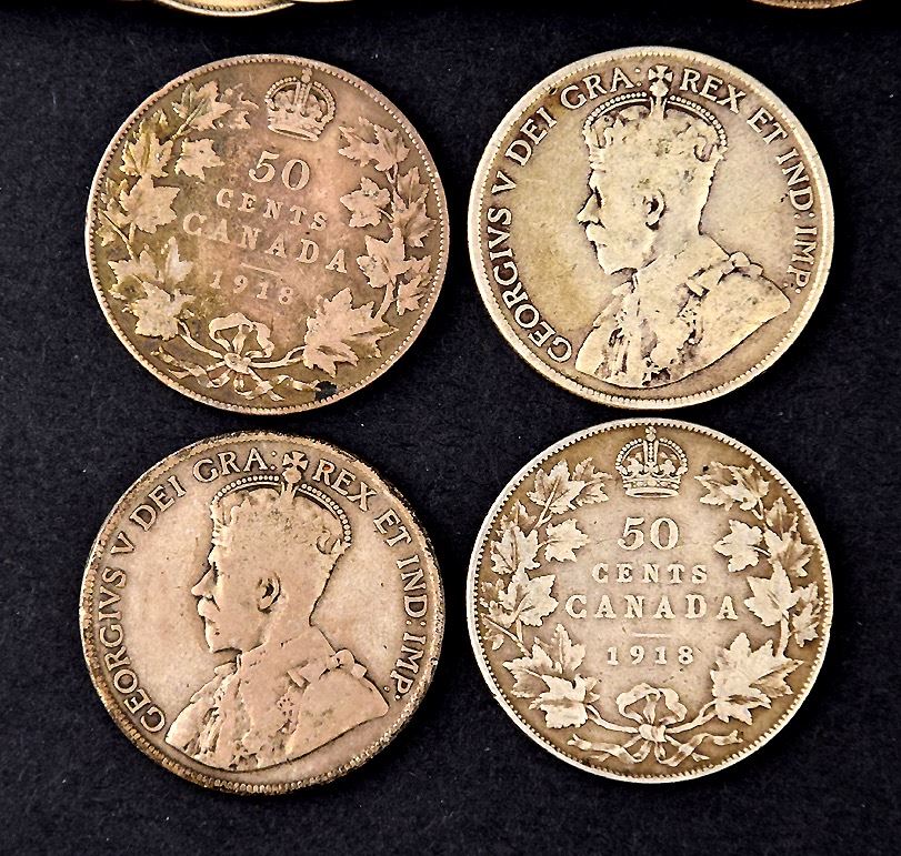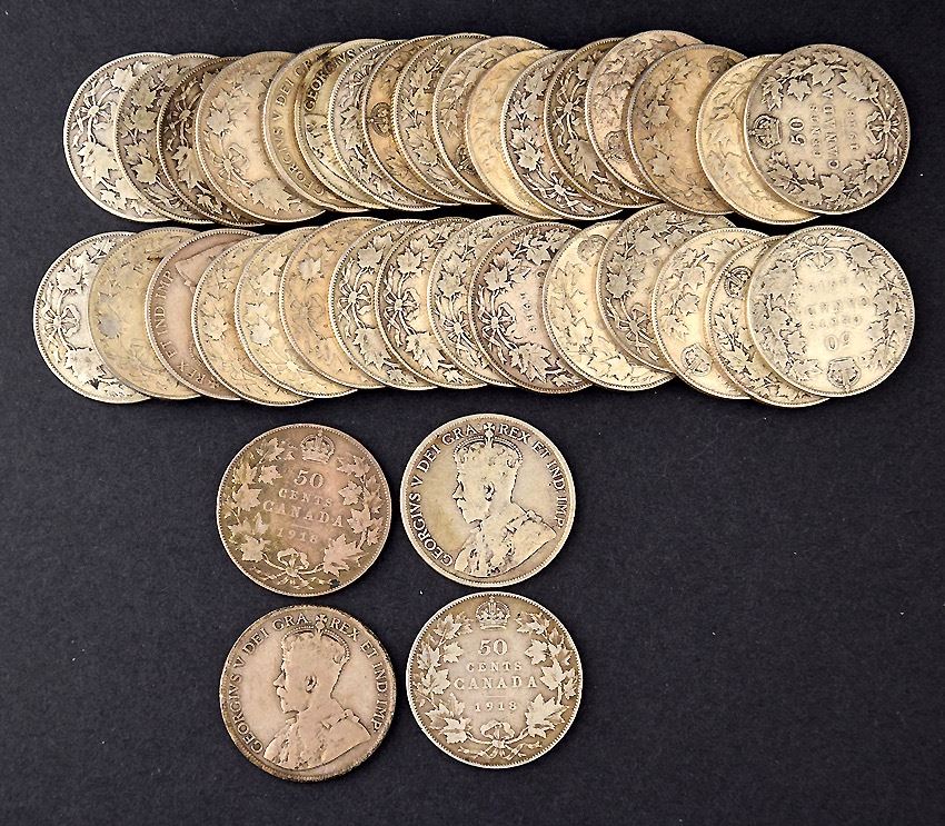 Canada 50¢, 1918, 37 coins, average VG condition, no damaged coins.