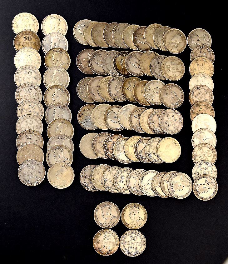 Newfoundland, 1918c, Fifty Cents, 86 coins, nice collectible coins, VG-Fine.