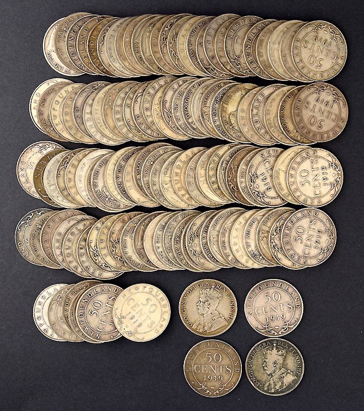 50¢ 1919c Newfoundland, Lot of 112 coins, VG-F+