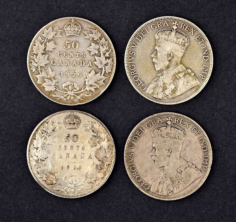 Canada 50¢, 1920, 60 coins, average VG condition, no damaged pieces, collectible coins.