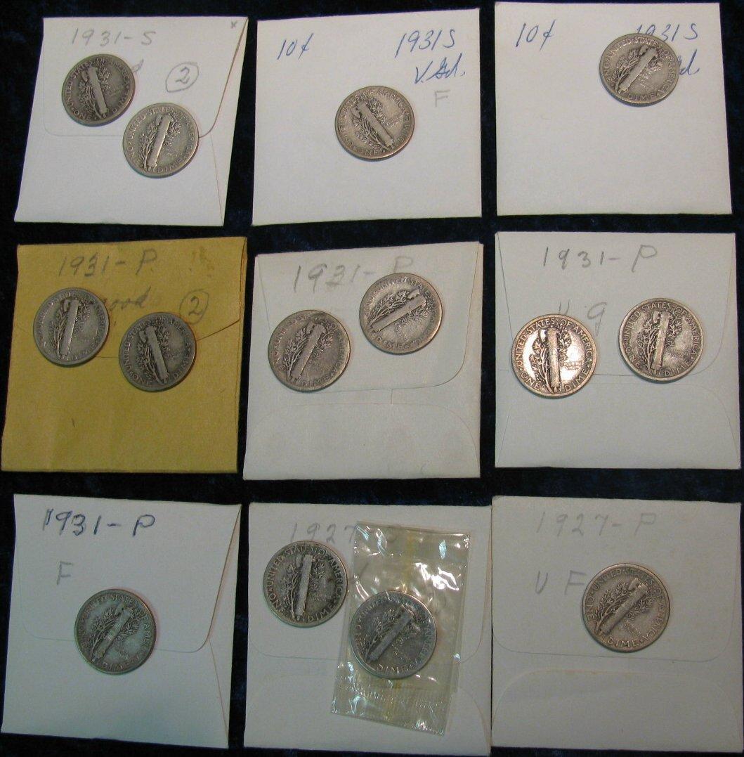 50. 1927P VF, (2) 27S VG, (7) 31P VG-F, & (4) 31S VG Mercury Dimes. Redbook $52.00.
