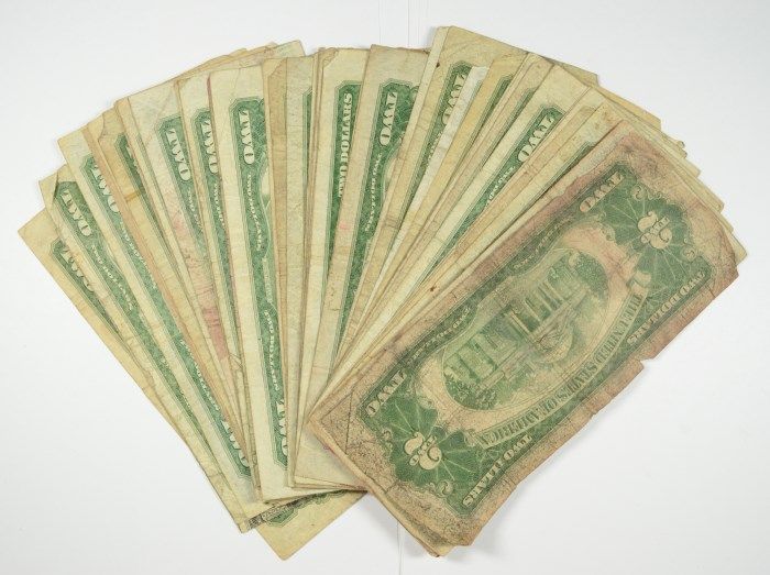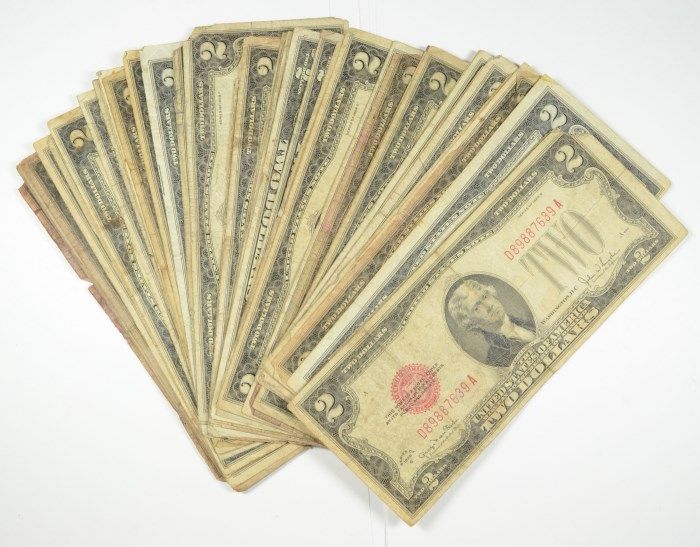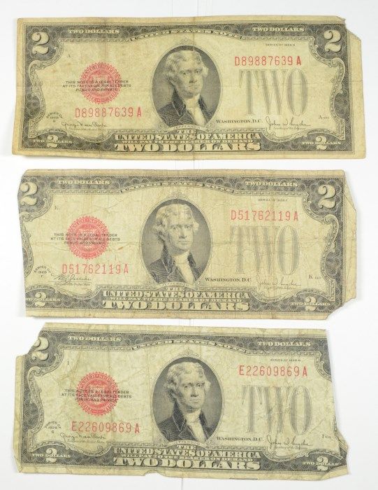50-1928 $2 RED SEAL CURRENCY, AVG CIRCULATED CONDITION