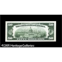 <B>$50 1950 Face and Back Set. Superb Gem New.</B></I> These fifties are utterly flawless save for the minor glue on the back that is common to all the denominations from this spectacularly handsome set. 2 notes Lot:15571