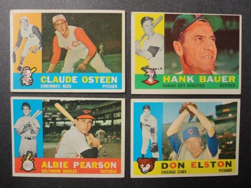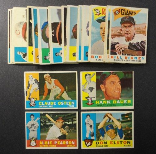 Includes: Claude Osteen, Hank Bauer, Albie Pearson, Don Elston & 8 Manager Cards. Clean front & back, all different. Mostly EX-VGEX. Runs from #177 - 273. Est. Value $80.00 - $100.00.