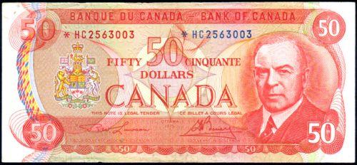 Bank of Canada Fifty Dollars 1975, Lawson-Bouey, BC-51aA Serial Number *HC2563003, VF-EF