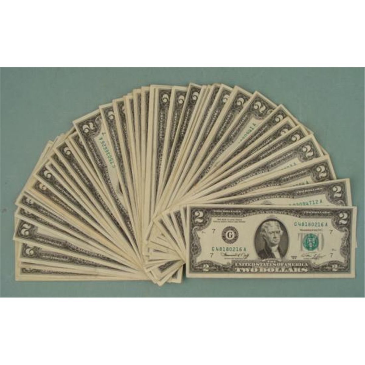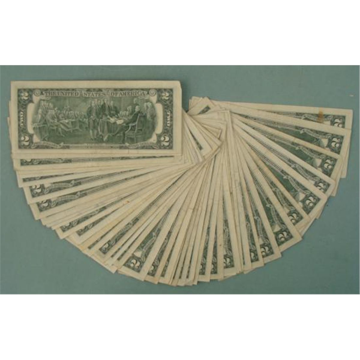 (50) 1976 $2 Bill Notes * * Condition: All nice, no rips, tears or holes * Mint Mark: G (Chicago) * * Bills may be different from those shown