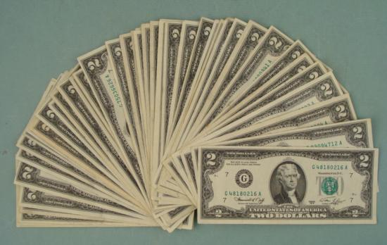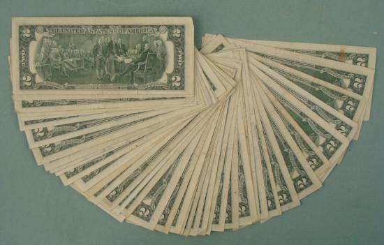 (50) 1976 $2 Bill Notes * * Grade: XF - UNC * Mint Mark: G (Chicago) * * Bills may be different from those shown