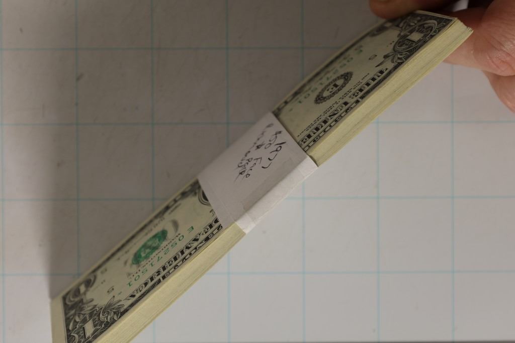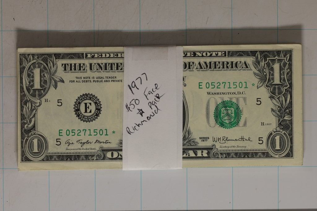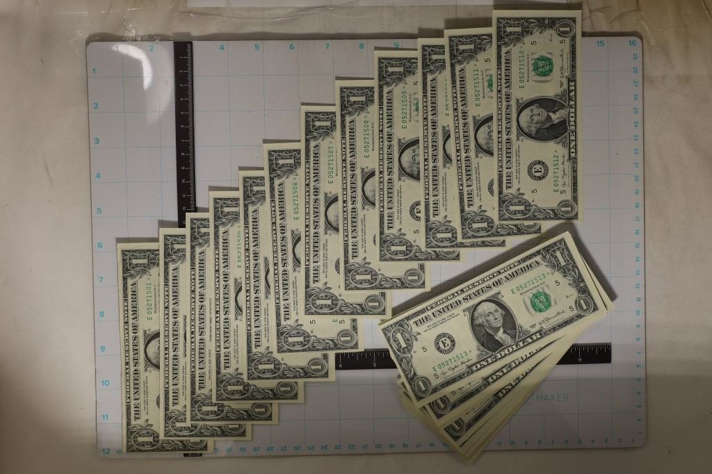 SERIAL NUMBERS ALL CRISP UNC, GREEN SEALS, THERE IS A MIS CUT GOING ON WITH THE LEFT SIDE, AS THE STACK GOES DOWN THE MIS CUT IS LESS AND LESS