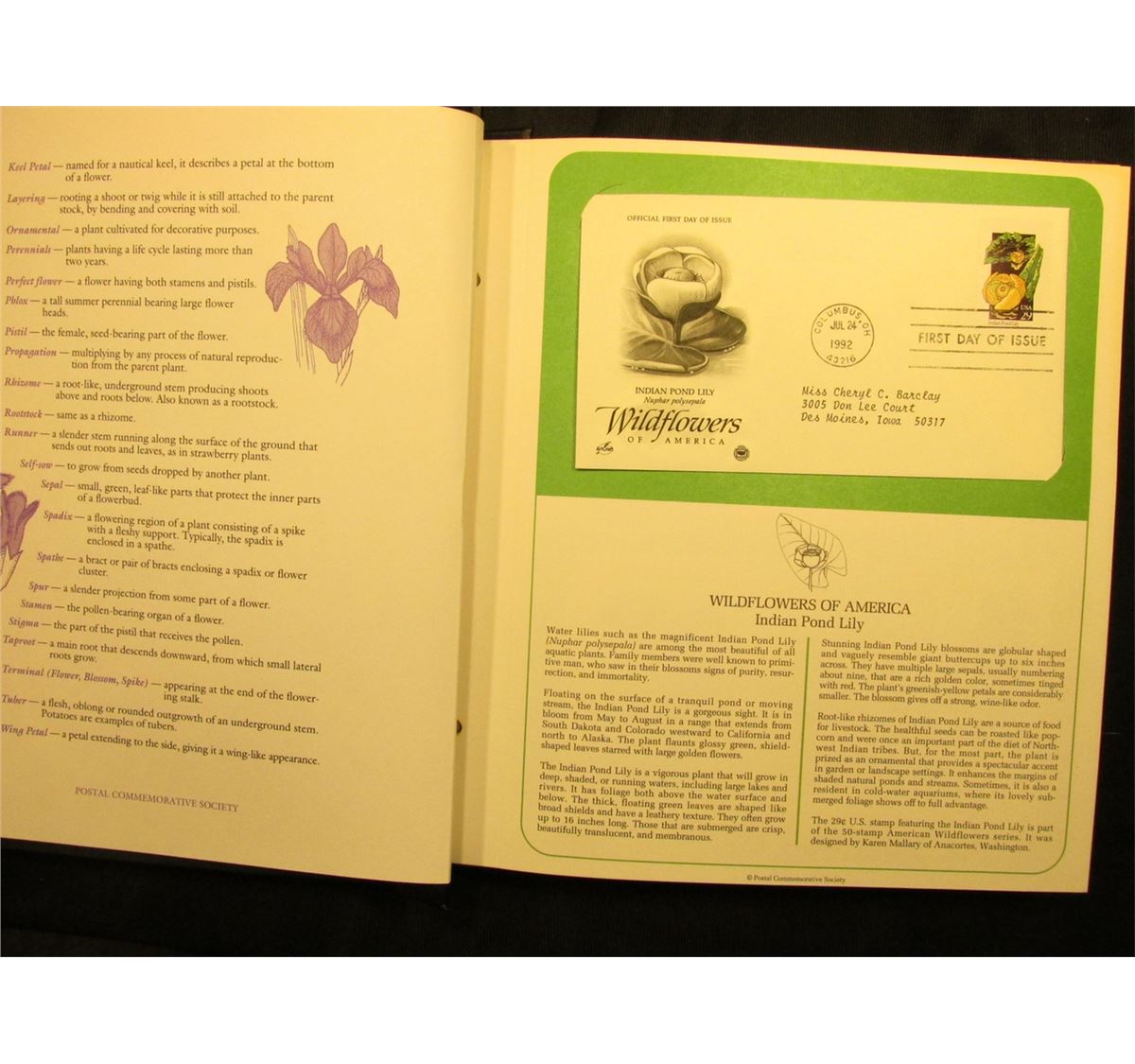 (50) 1992 Set of Birds and Flowers First Day Stamp Covers by Postal Commemorative Society on Pages in a Nice Album.