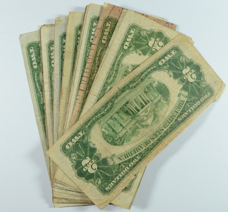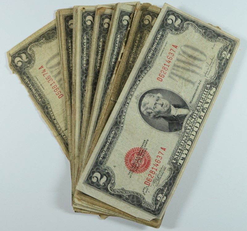 ( 50 ) $2.00 U.S. RED SEAL NOTES, 1928 AVERAGE CIRCULATED