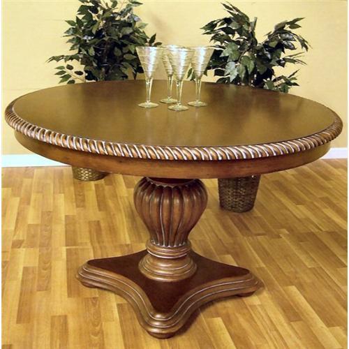 High Quality 50.5 Inches Round Italian Provincial Dining Room Table, this table is constructed from Hard Woods and Solid Walnut Wood & Veneers. The table top stands on top of a very heavy pedestal with four bun feet. This table looks stunning in person and it will give your home a great touch that combines the modern and classical look.