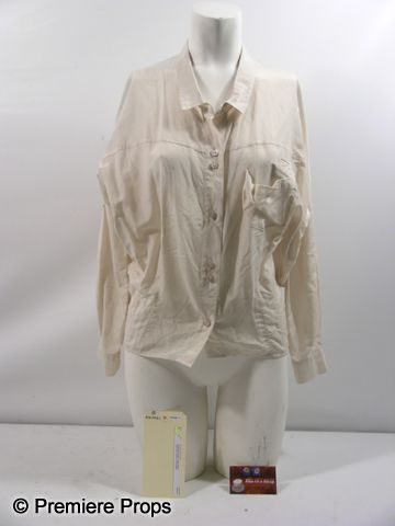 Rachael (Bryce Dallas Howard) screen worn, cream long sleeve button up the front 'Quicksilver' blouse, (size S) and blue with pink flower fabric button studs. Includes wardrobe tag! This is from the scene when Adam tells Rachel that he has cancer.