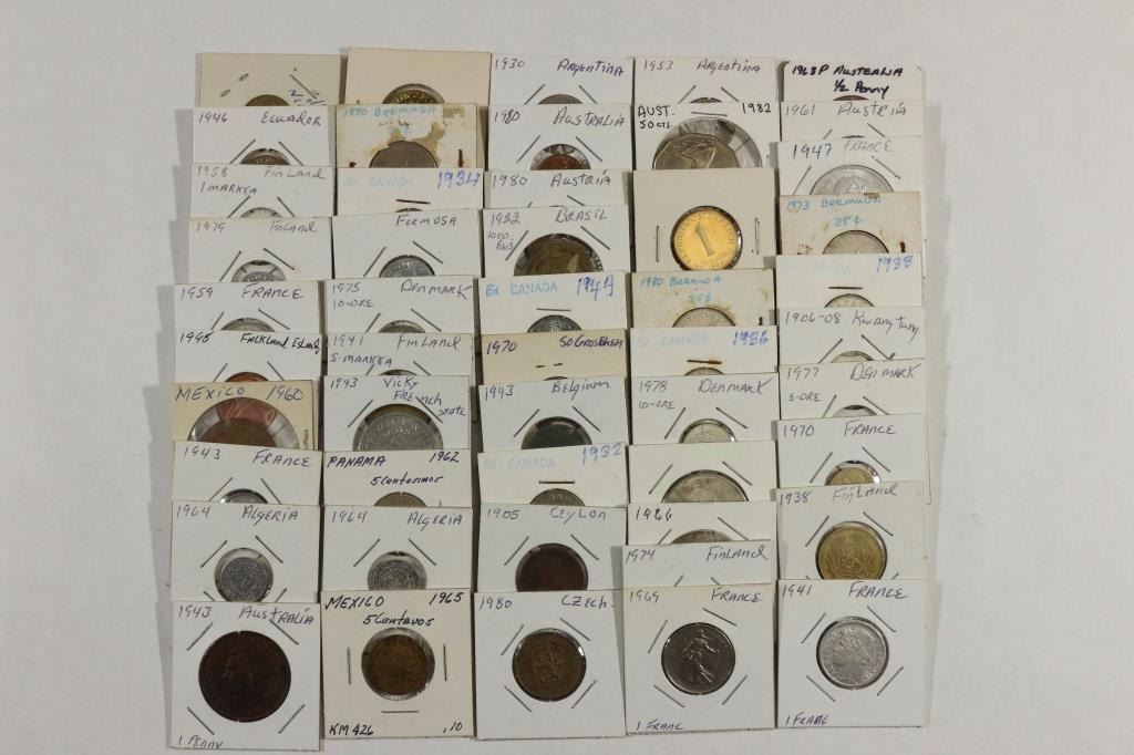 50 ASSORTED FOREIGN COINS ALL FLIPPED AND LABELED