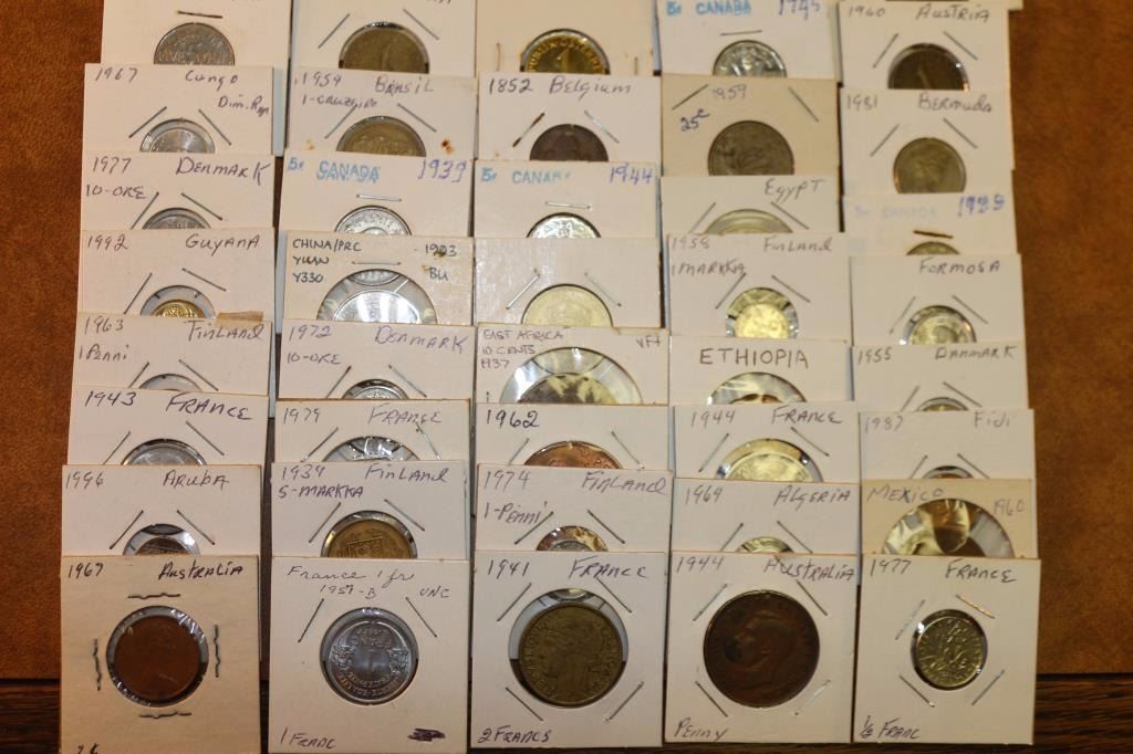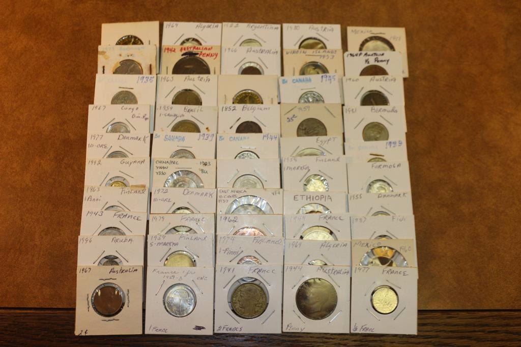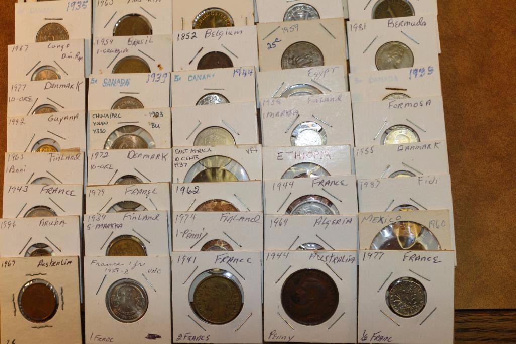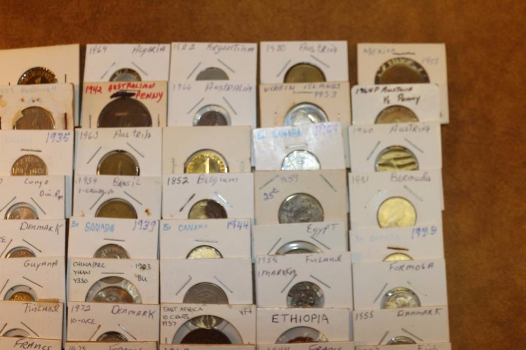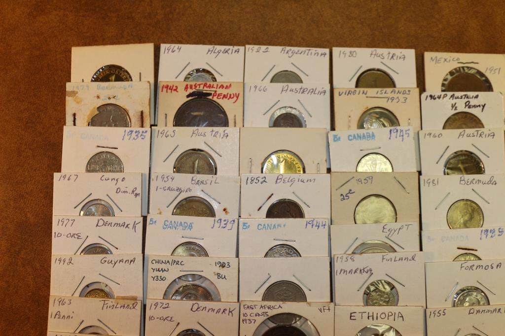 50 ASSORTED FOREIGN COINS ALL FLIPPED & LABELED