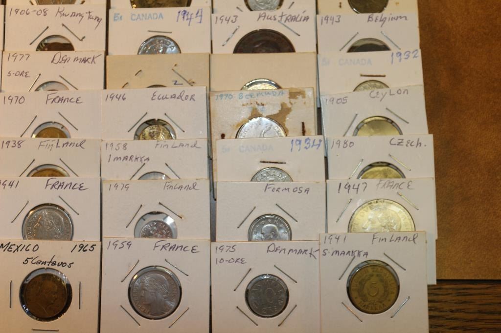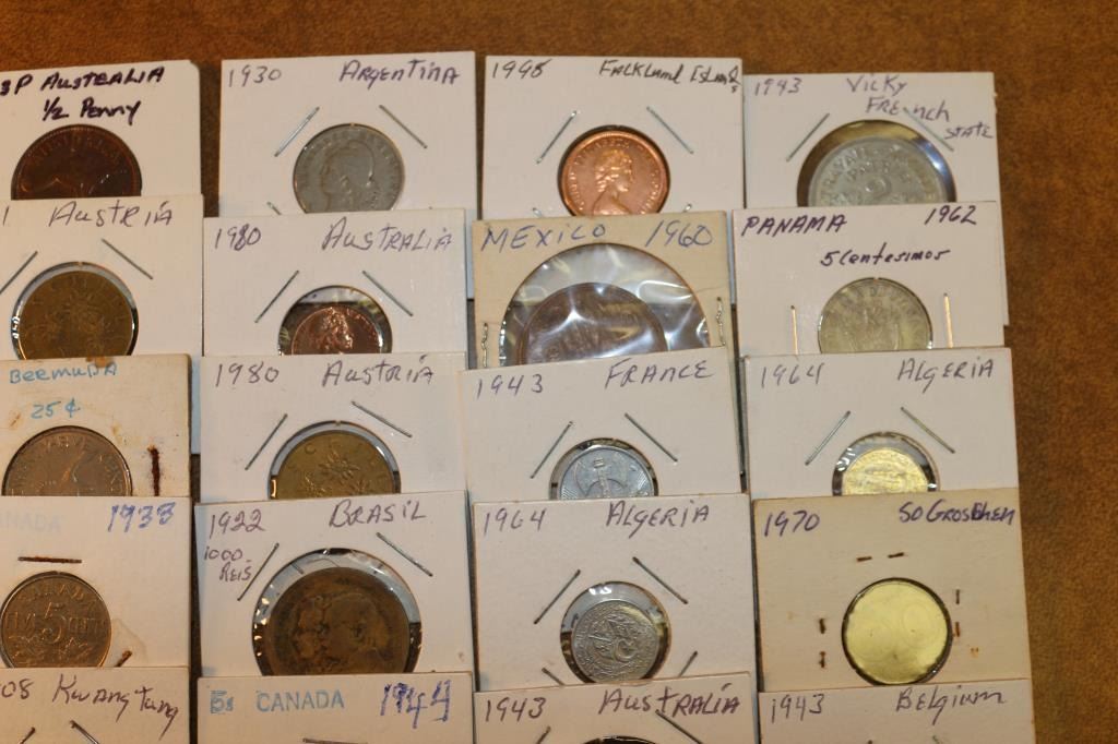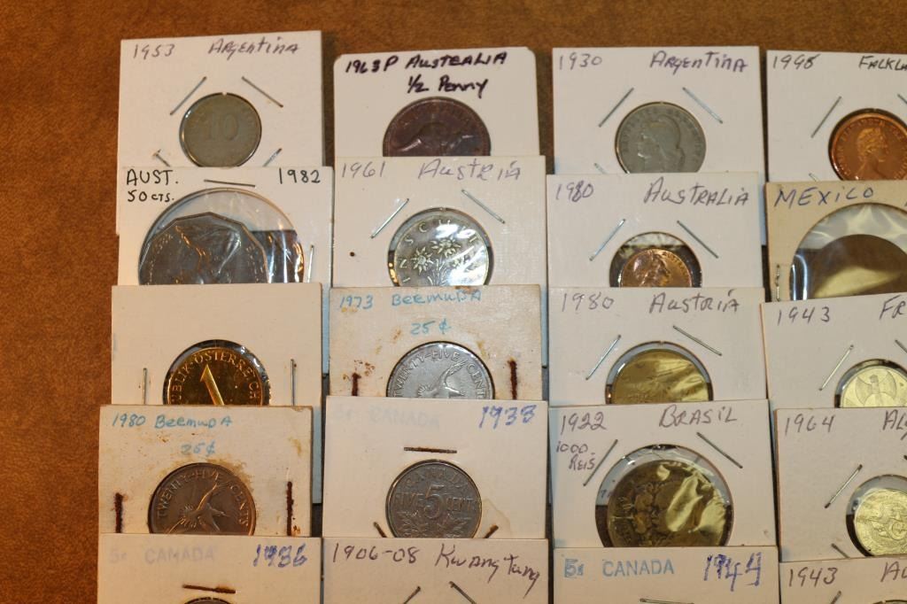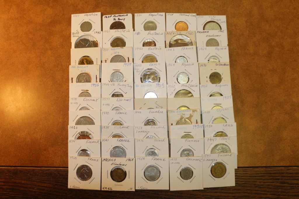 50 ASSORTED FOREIGN COINS ALL FLIPPED & LABELED