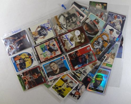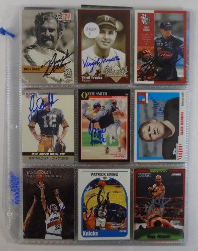 These cards come from a large group of over 1000 autographs acquired over several years by a single collector. The vast majority were the result of old-fashioned mail request. Some came from card show sessions and a few were purchased from dealers. There are No COA's but they sure all look real. Names include Alex Karras, Terry Bradshaw, Buck Baker, Kurt & Kyle Bosch, Virgil Trucks, Ozzie Smith, Barry Bonds, Hank Bauer, Jason Kidd, Patrick Ewing, Ray Allen, Pat Boone, Kurt Angle, Mike Hockabee & many others.