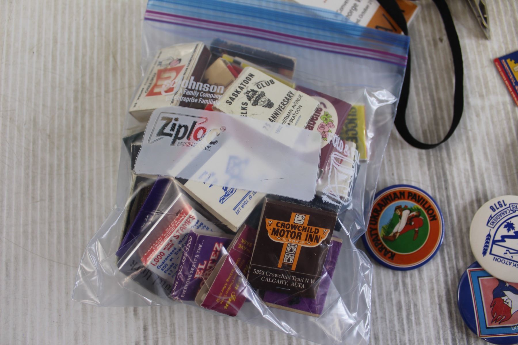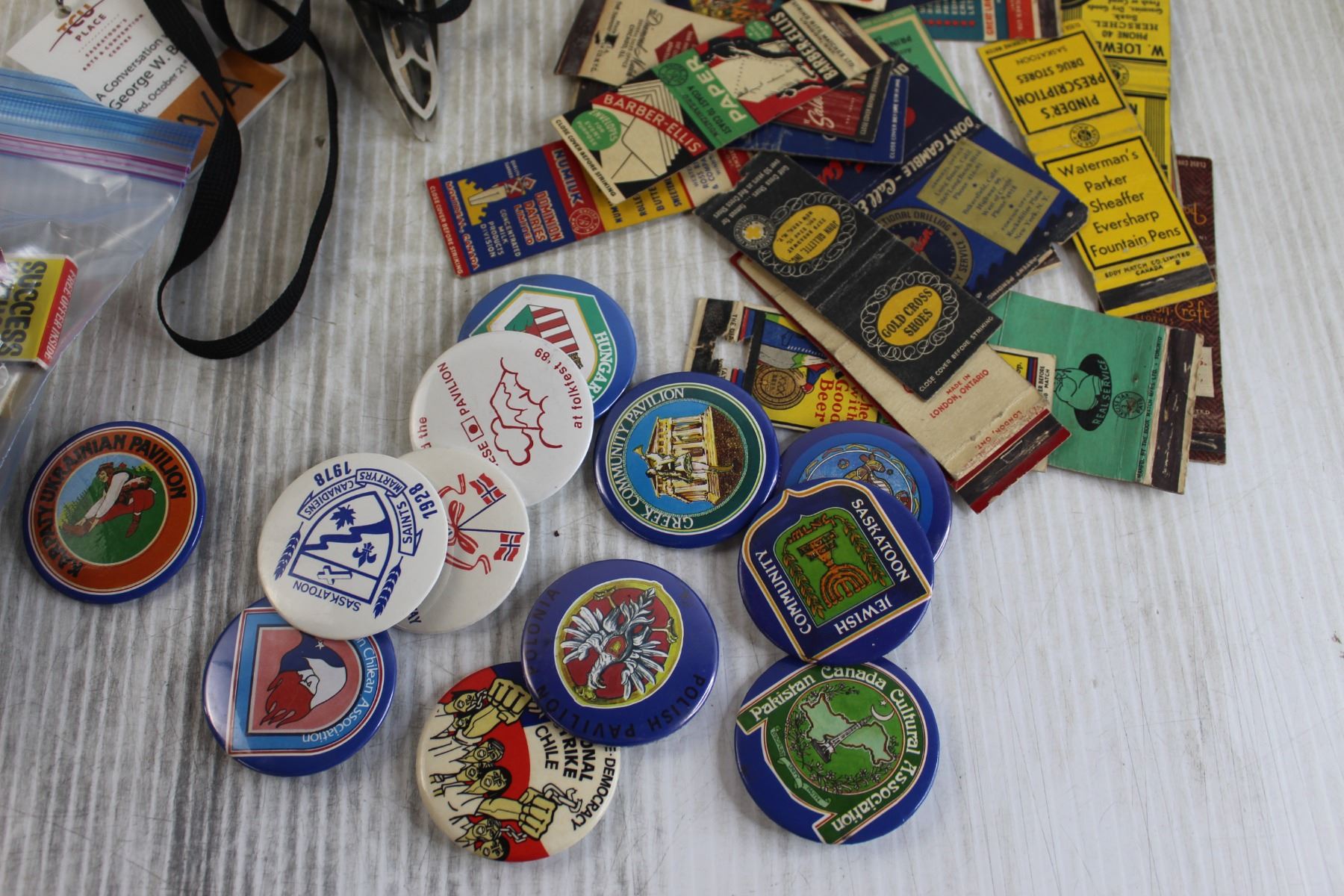 (50+) Assorted Matchbook Covers, (10+) Pin-Back Buttons