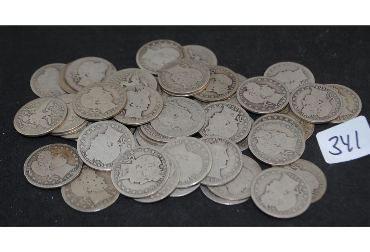 50 BARBER QUARTERS FROM SAFE DEPOSIT - MIXED DATES AND MINTS - SOLD PER COIN TIMES 50