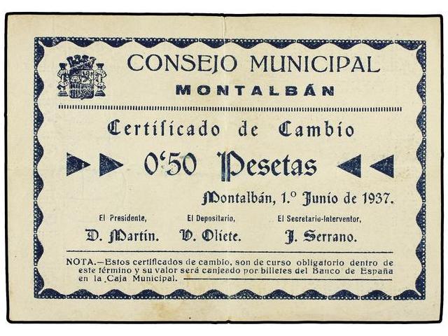 50 Céntimos. 1 Junio 1937. C.M. de MONTALBÁN (Teruel). MUY RARO. EBC-.