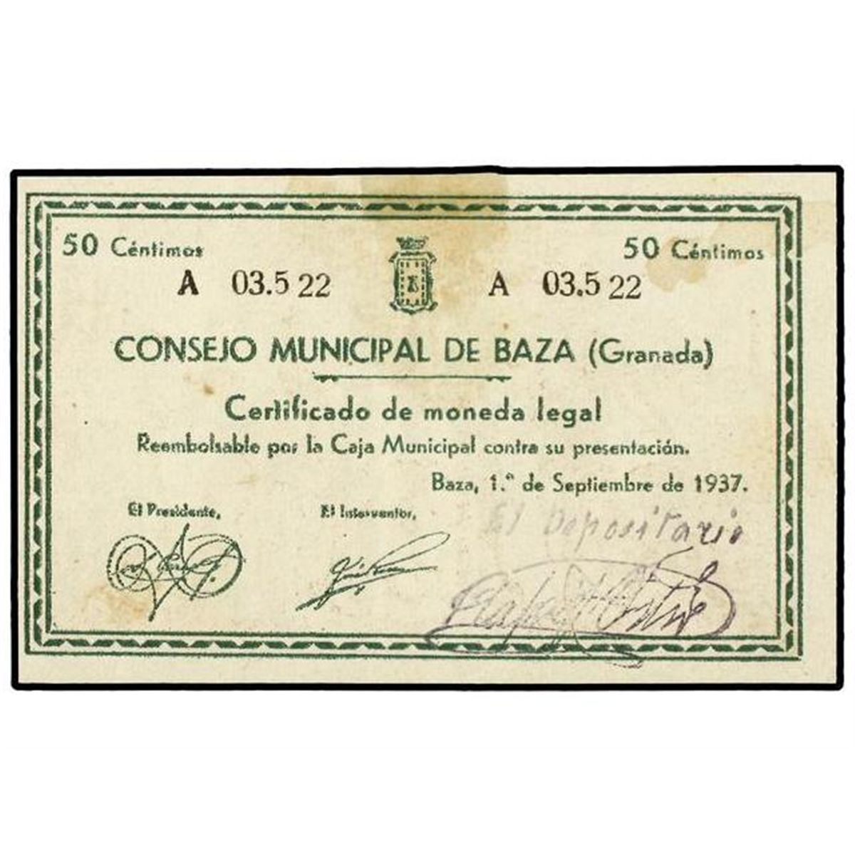50 Céntimos. - 1 septiembre 1937. - C.M. de BAZA (Granada). - Mont. 242D. MBC+. - -