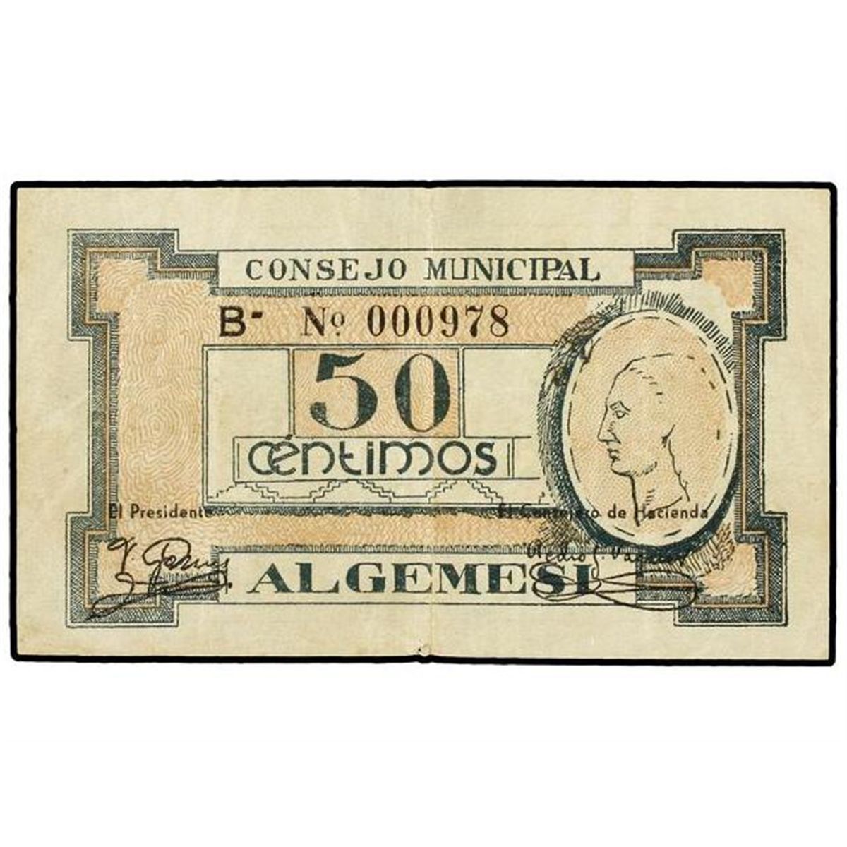 50 Céntimos. - C.M. de ALGEMESI (Valencia). - Serie B. Mont. 116B. MBC+. - -