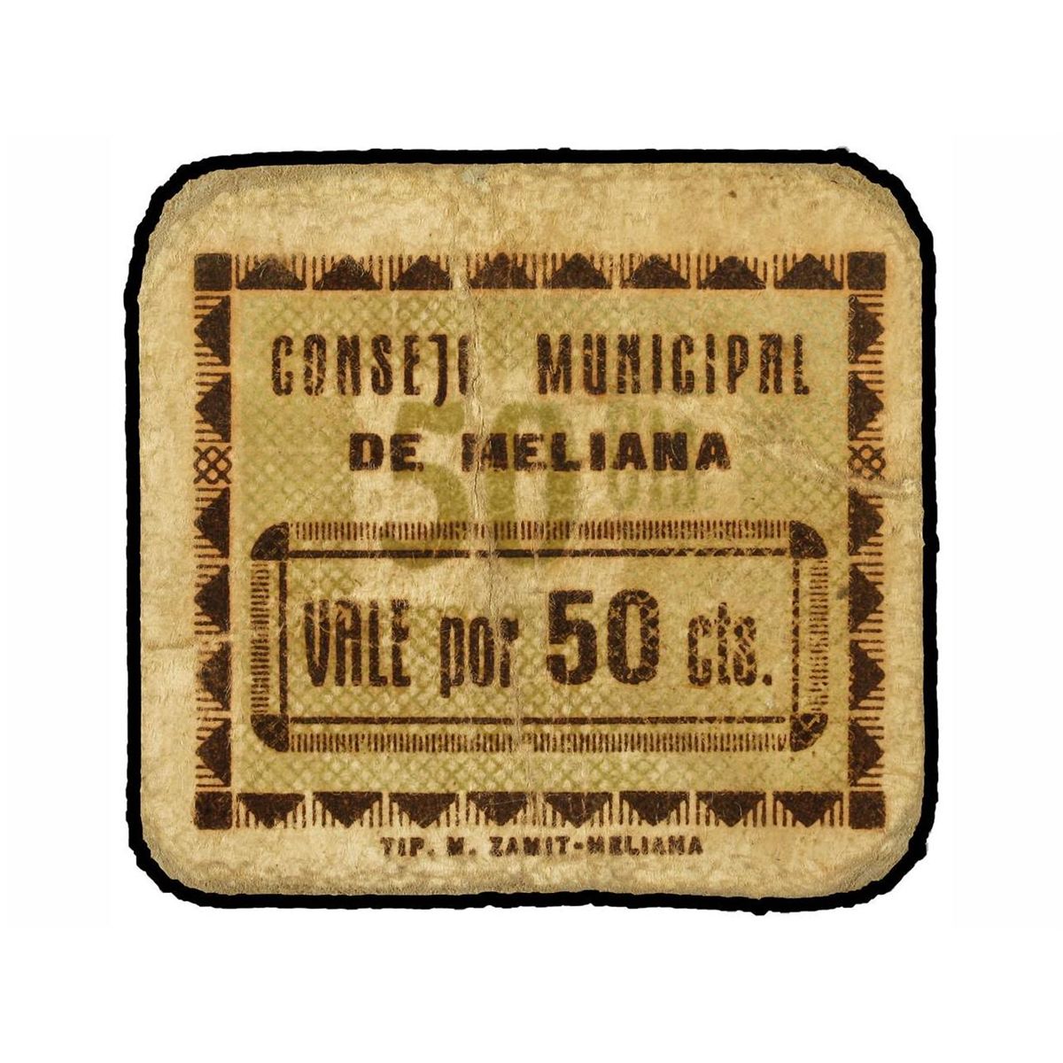 50 Céntimos. - C.M. de MELIANA (Valencia). - Cartón. MUY RARO. T-945. MBC-. - -