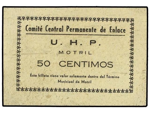 50 Céntimos. COMITÉ CENTRAL PERMANENTE U.H.P. de MOTRIL (Granada). Mont-978A. MBC+.