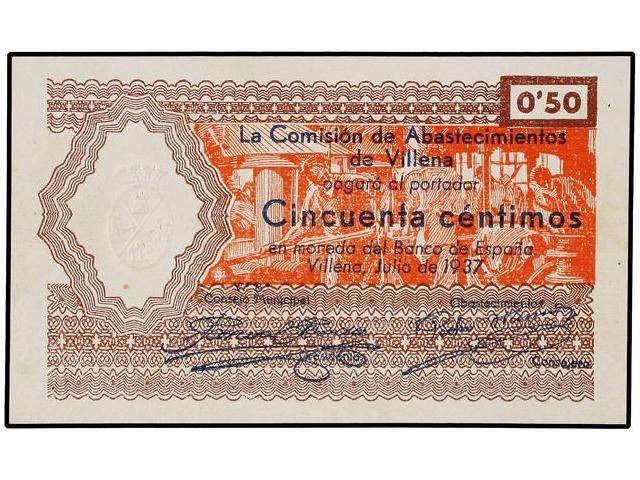 50 Céntimos. Julio 1937. LA COMISIÓN DE ABASTECIMIENTOS DE VILLENA (Alicante). TV-1528. SC.