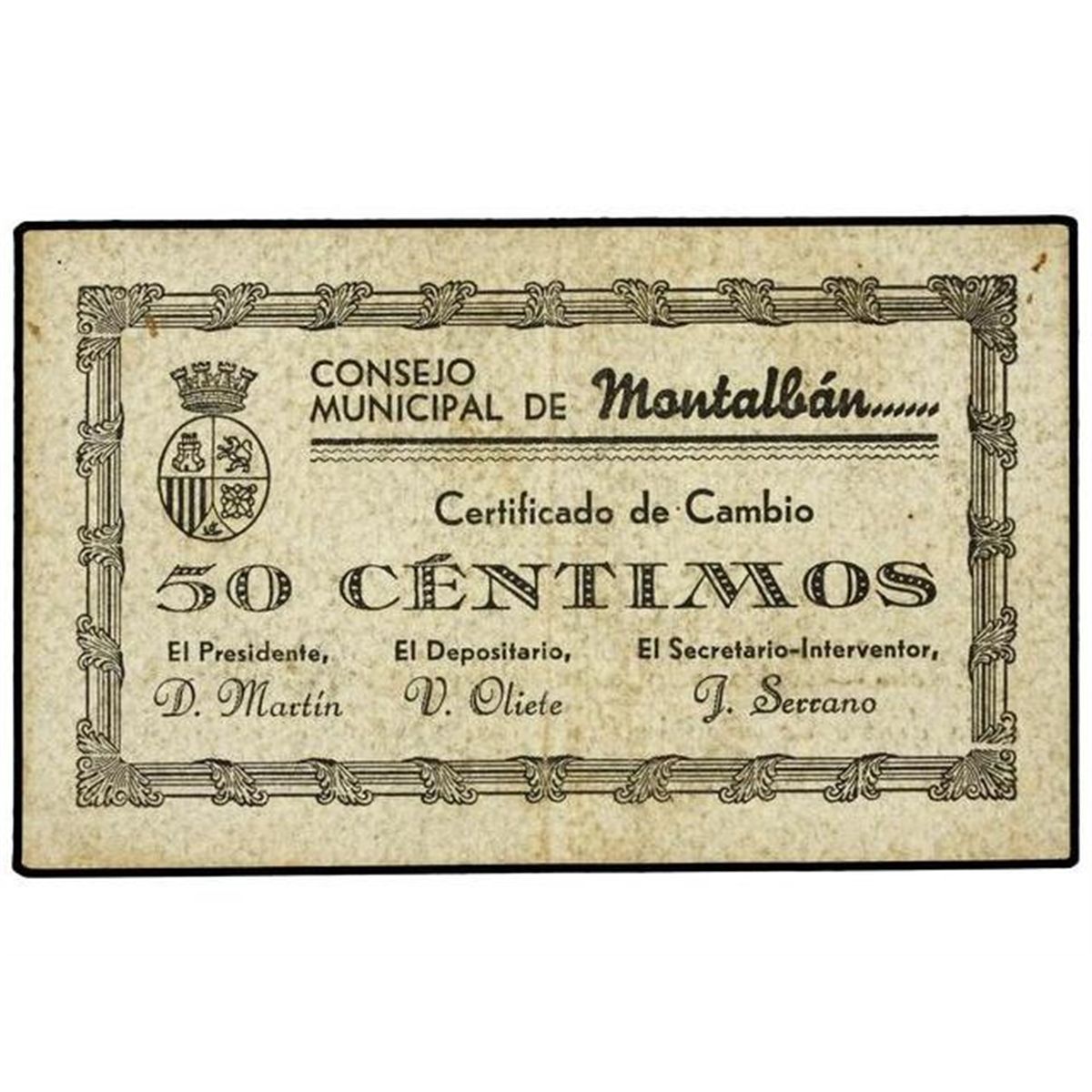 50 Céntimos. - S/F. - C.M. de MONTALBAN (Teruel). - Cartulina. (Algo sucio). Mont-941C. MBC+. - -
