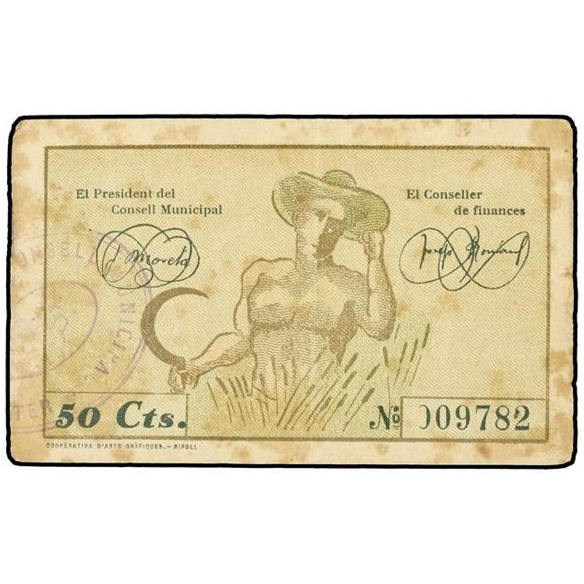 50 Cèntimos. - S/F. - C.M. de PUIG-ALT DE TER. - (Manchitas). ESCASO. AT-2023e;T-2329-var. MBC. - -