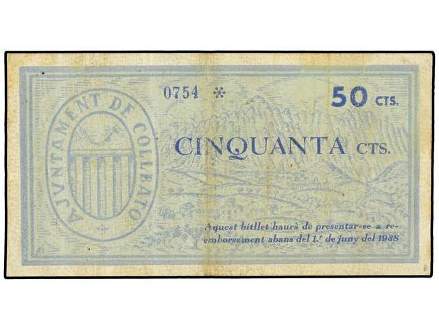 50 Cèntims. 1 Juny 1938. Aj. de COLLBATÓ. ESCASO. AT-853; T-989. MBC.
