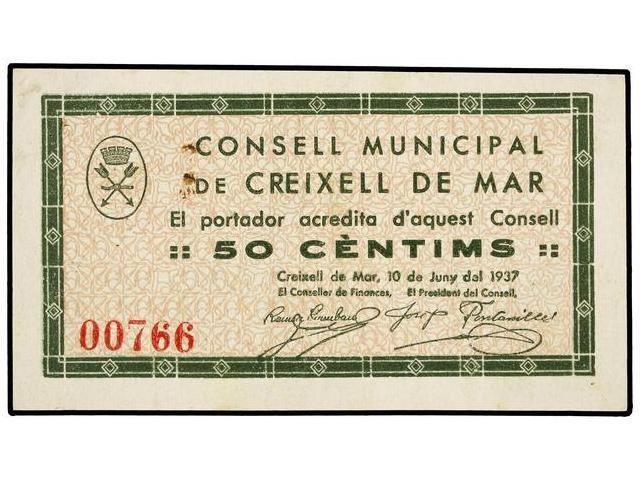 50 Cèntims. 10 Juny 1937. C.M. de CREIXELL DE MAR. AT-901; T-1039. MBC+.