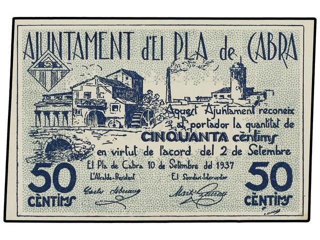 50 Cèntims. 10 Setembre 1937. Aj. d´EL PLA DE CABRA. Sin sello tampón. ESCASO. AT-1848b; T-2138b. EBC+.