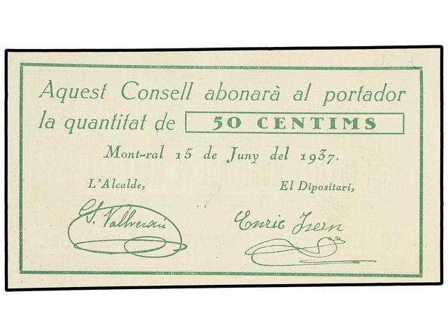 50 Cèntims. - 15 Juny 1937. - C.M. de MONT-RAL. - ESCASO. AT-1594; T-1830. SC. - -